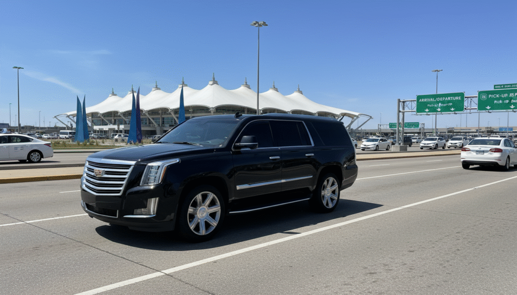 The moment you land at Denver International Airport, your focus should shift from travel logistics to the excitement of your Colorado destination. The image of our sleek, black luxury SUV, positioned perfectly against the iconic peaks of the DIA terminal, is a visual promise: Your journey is about to become effortless.
